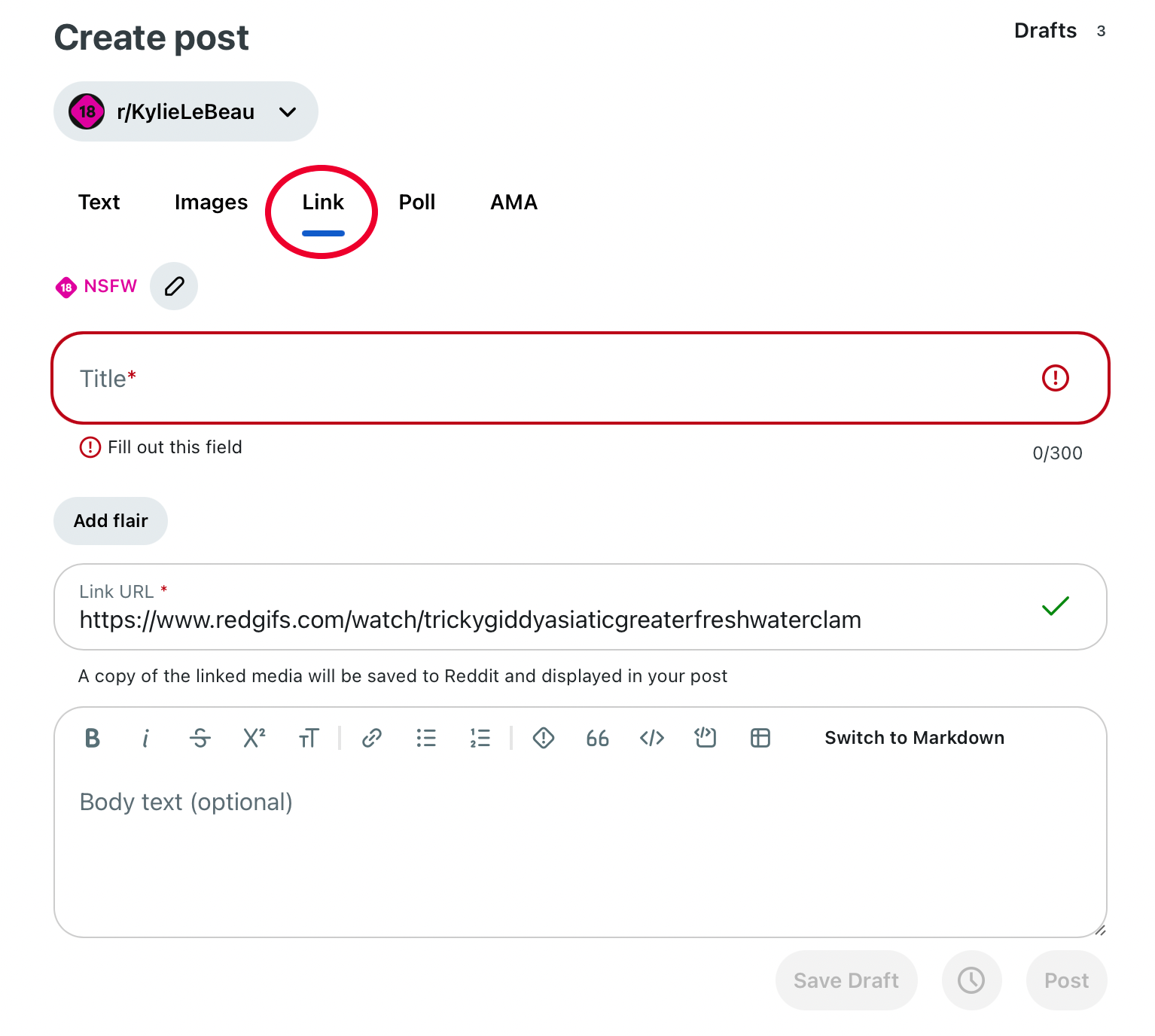 Step two: After you’ve established your account with enough karma it’s finally time to start posting! Be aware that quite a lot of Reddit communities have rules. Some communities won’t allow you to post without x number of karma so refer to the sidebar or pinned post for the rules. Below you’ll find examples of rules from a few popular subreddits. To post an image simply click on the images tab. If you’re going to post a video on any NSFW subreddit it needs to be hosted on an approved site. Typically people use RedGIFS.com. Once you’ve uploaded your video, click the share link > copy link > then insert the link into a new post. Some communities may require you to add a “flair,” which is simply a tag.